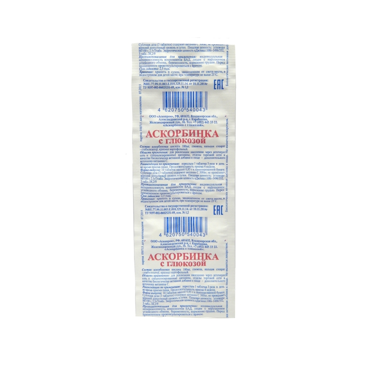 Аскорбиновая кислота Повышает концентрацию в крови бензилпенициллина и тетрациклинов; в дозе 1 г/сут повышает биодоступность этинилэстрадиола (в т.ч. входящего в состав пероральных контрацептивов).Улучшает всасывание в кишечнике препаратов железа (переводит трехвалентное железо в двухвалентное); может повышать выведение железа при одновременном применении с дефероксамином.Снижает эффективность гепарина и непрямых антикоагулянтов.Ацетилсалициловая кислота, пероральные контрацептивы, свежие соки и щелочное питье снижают всасывание и усвоение. При одновременном применении с ацетилсалициловой кислотой повышается выведение с мочой аскорбиновой кислоты и снижается выведение ацетилсалициловой кислоты . Ацетилсалициловая кислота снижает абсорбцию аскорбиновой кислоты примерно на 30%.Увеличивает риск развития кристаллурии при лечении салицилатами и сульфаниламидами короткого действия, замедляет выведение почками кислот, увеличивает выведение лекарственных средств, имеющих щелочную реакцию (в т.ч. алкалоидов), снижает концентрацию в крови пероральных контрацептивов.Повышает общий клиренс этанола, который в свою очередь снижает концентрацию аскорбиновой кислоты в организме.Лекарственные средства хинолинового ряда, кальция хлорид, салицилаты, ГКС при длительном применении истощают запасы аскорбиновой кислоты.При одновременном применении уменьшает хронотропное действие изопреналина.При длительном применении или применении в высоких дозах может нарушать взаимодействие дисульфирам-этанол.В высоких дозах повышает выведение мексилетина почками.Барбитураты и примидон повышают выведение аскорбиновой кислоты с мочой.Уменьшает терапевтическое действие антипсихотических средств (нейролептиков) - производных фенотиазина, канальцевую реабсорбцию амфетамина и трициклических антидепрессантов.