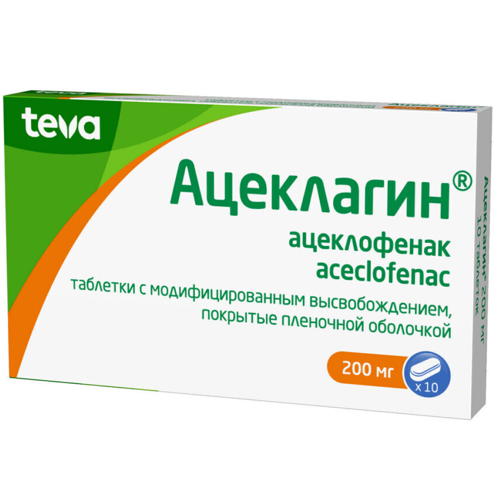 Активное вещество: ацеклофенак 200 мг