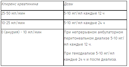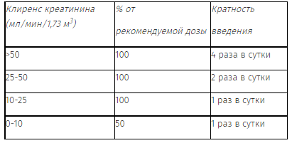 У детей со сниженной функцией почек требуется коррекция дозы в соответствии со степенью почечной недостаточности.
