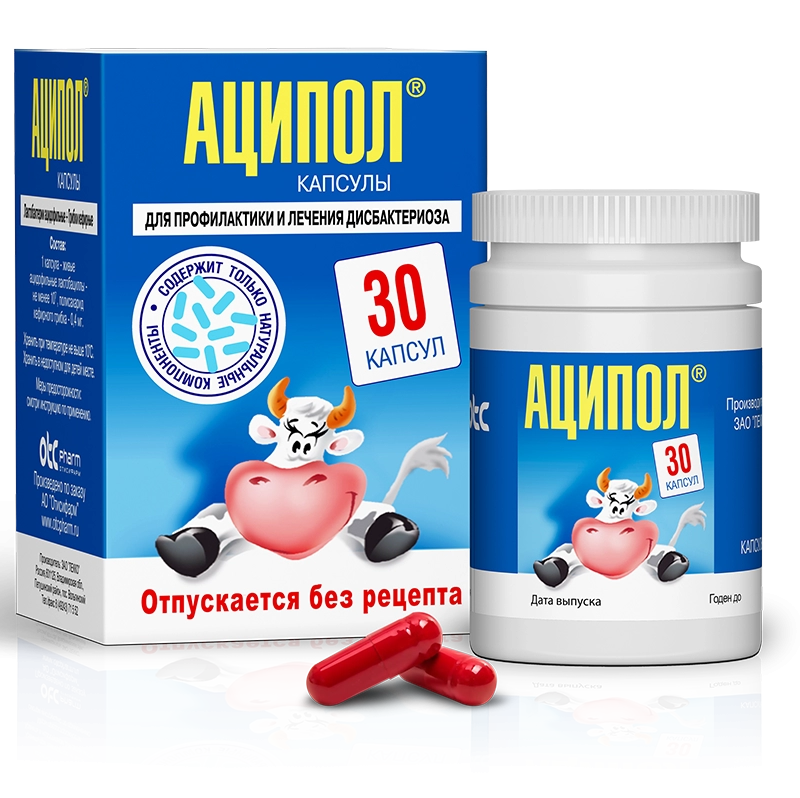 Препарат, регулирующий равновесие кишечной микрофлоры. Представляет собой лиофилизированную в среде культивирования смесь микробной массы живых антагонистически активных ацидофильных лактобацилл и инактивированных прогреванием кефирных грибков, содержащих водорастворимый полисахарид, которые определяют терапевтический эффект Аципола.