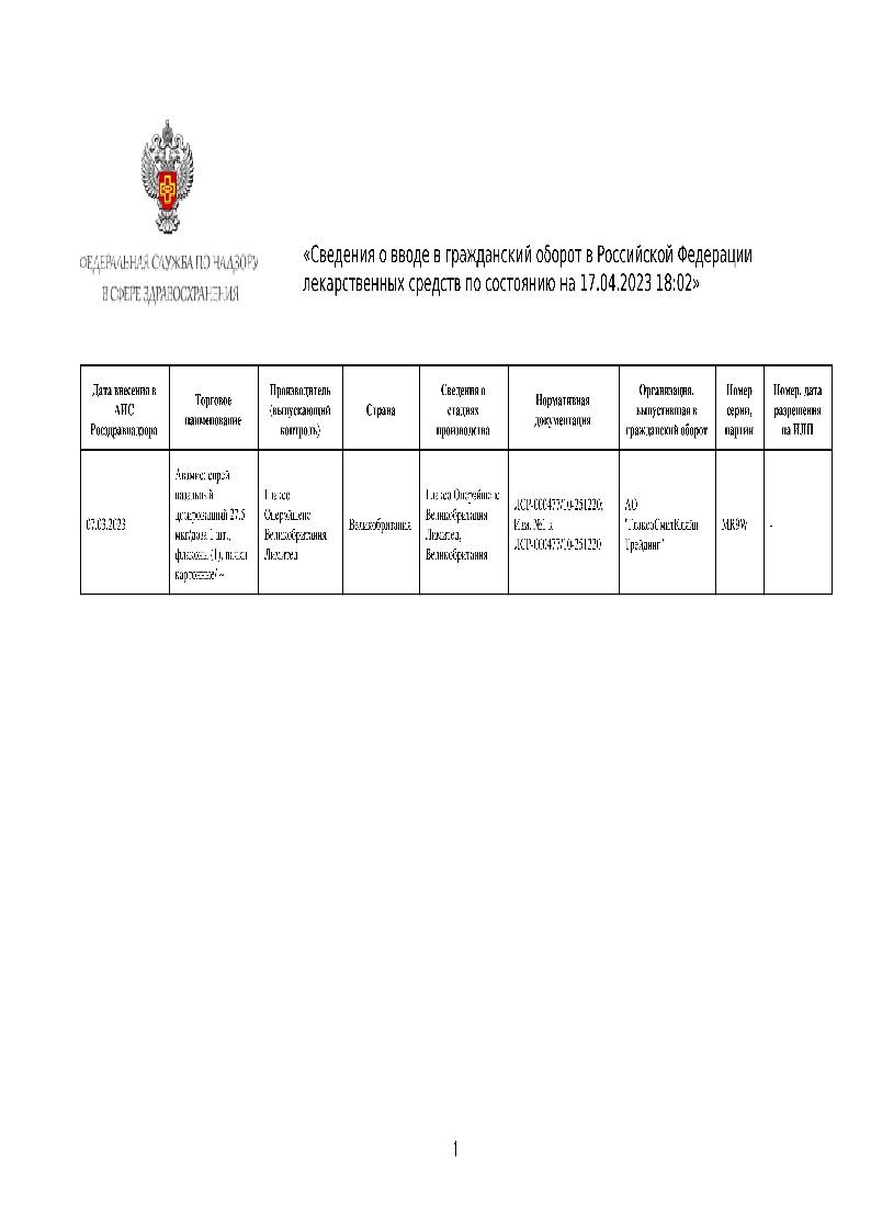 Симптомы: в исследовании биодоступности препарата интраназально применялись дозы в 24 раза выше рекомендованной дозы для взрослых в течение более 3 дней, при этом нежелательных системных реакций не наблюдалось.