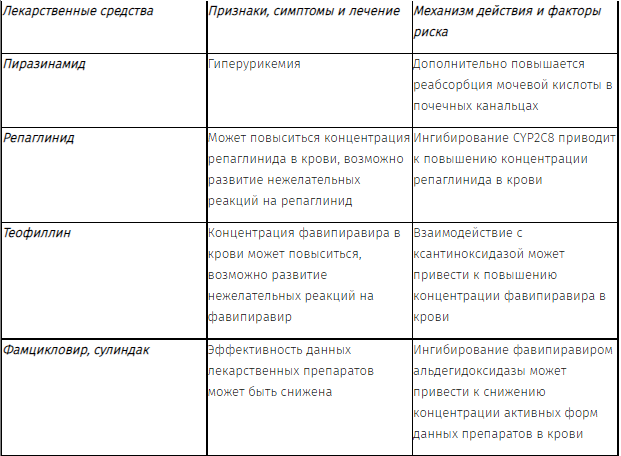 повышение активности аспартатаминотрансферазы (ACT) у 1 (1,7%) пациента и воль в грудной клетке у 1 (1,7%) пациента. Данные нежелательные реакции, за исключением боли в грудной клетке неясного генеза, соответствуют известным нежелательным лекарственным реакциям фавипиравира, представленным в Таблице 1.