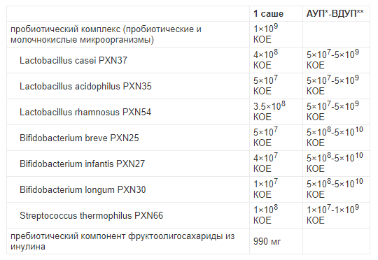 Состав комплекса уникален и подобран таким образом, что его компоненты усиливают и дополняют друг друга, восстанавливая микробный баланс и функции ЖКТ у новорожденных и детей раннего возраста.