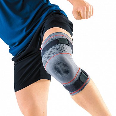 - Вязко-эластичная вставка оказывает дополнительное массажное воздействие, препятствует появлению или усилению отека, стабилизирует и снимает давление с коленной чашечки.