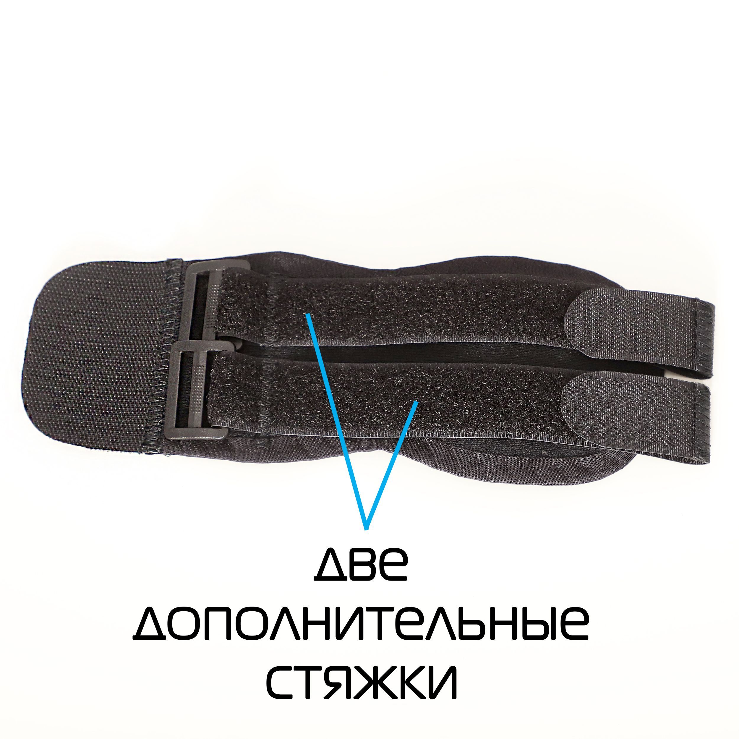 • Двум фиксирующим стяжкам, которые позволяют самостоятельно отрегулировать степень компрессии бандажа