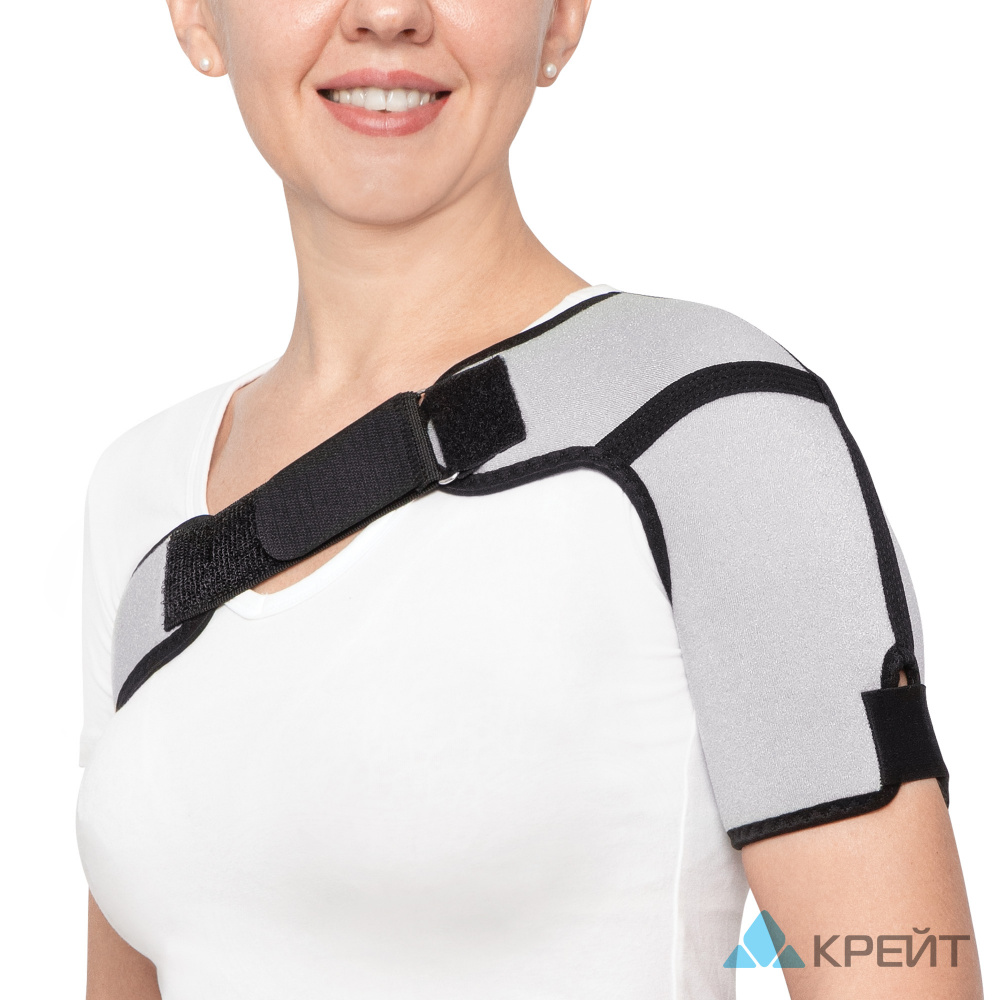 - Удобная неразъемная конструкция легко надевается, хорошо поддерживает плечевой сустав, ограничивает движения