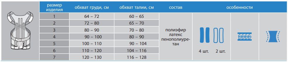 - Обеспечивает умеренную фиксацию и стабилизацию грудного и пояснично-крестцового отделов позвоночника с разведением плечевого пояса.