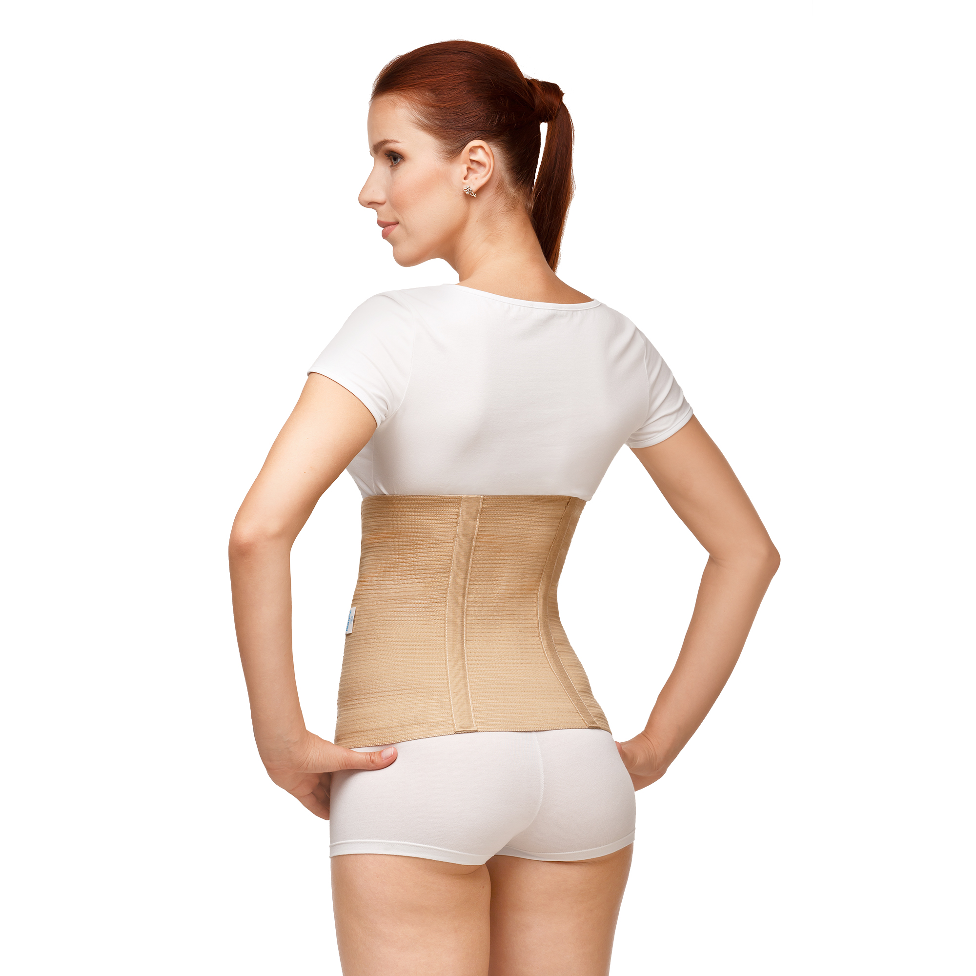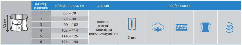 • Двухпанельная застежка облегчает надевание, обеспечивая анатомическое прилегание бандажа к телу.