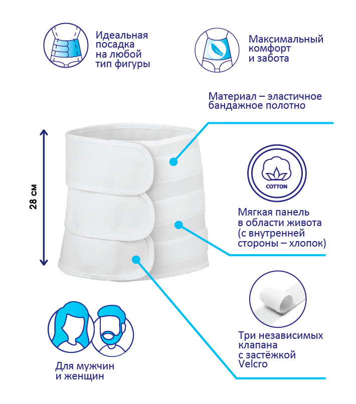 Высота бандажа подбирается в зависимости от длины послеоперационного шва и особенностей фигуры