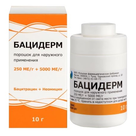 Порошок показан для применения при инфекциях, вызванных микроорганизмами, чувствительными к неомицину и/или бацитрацину.