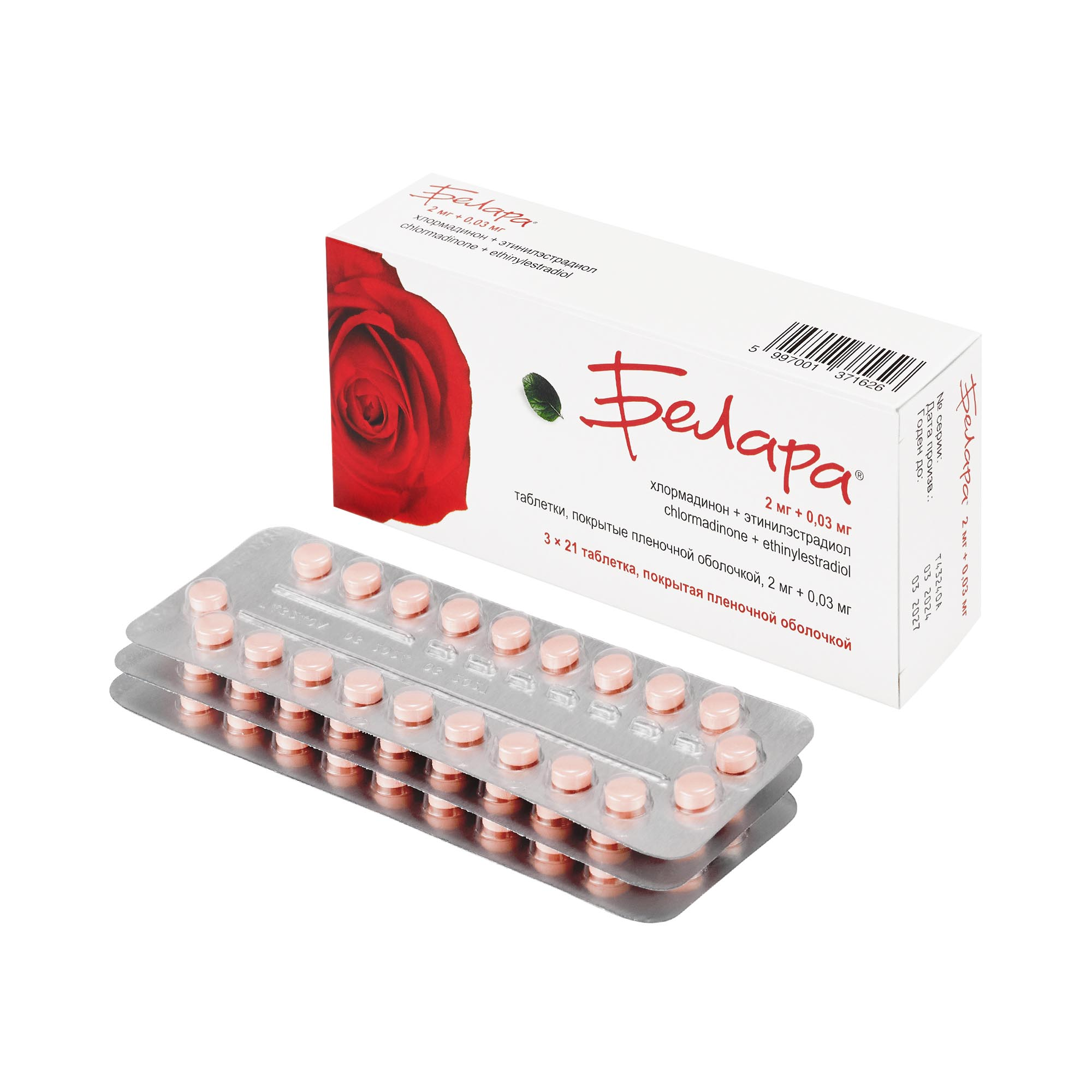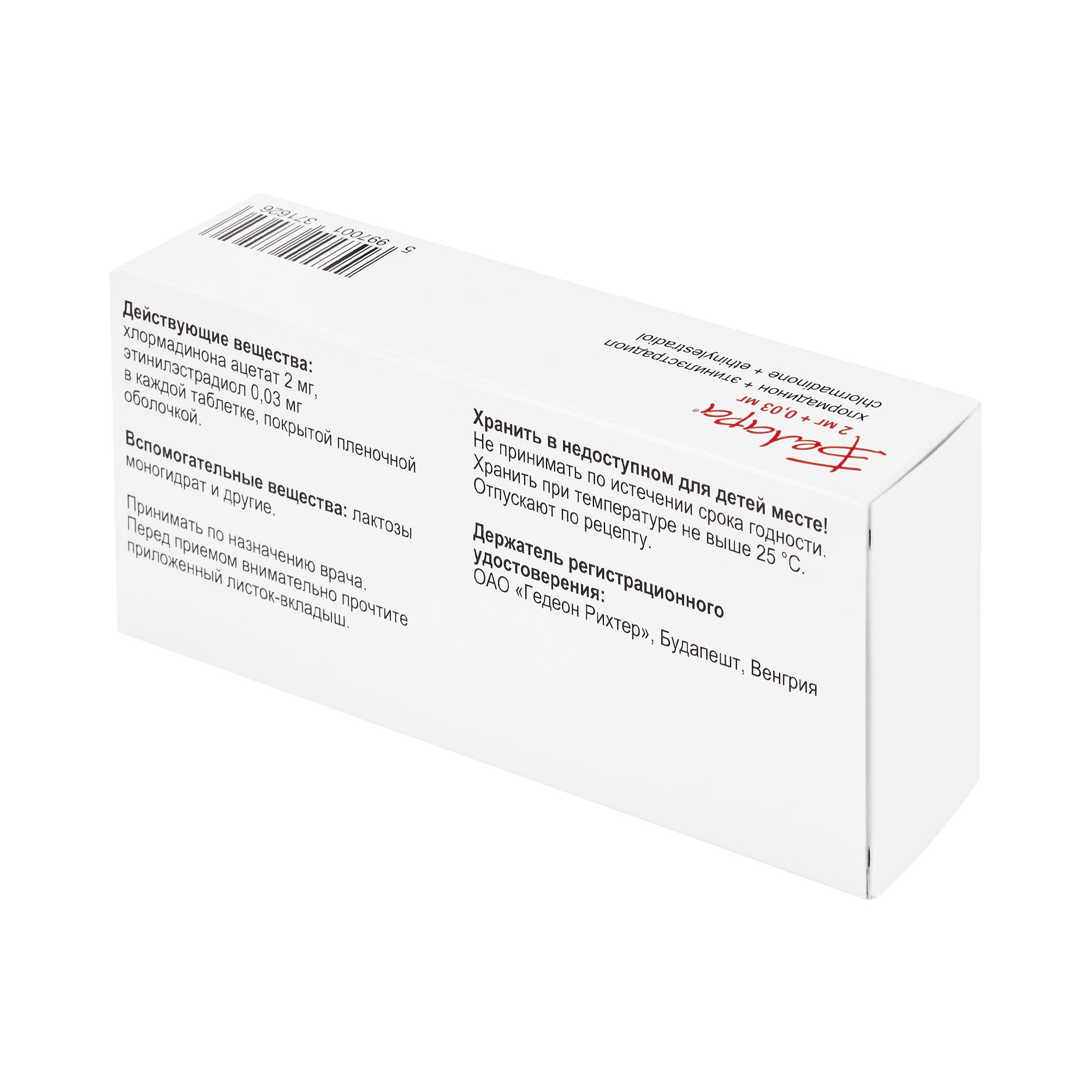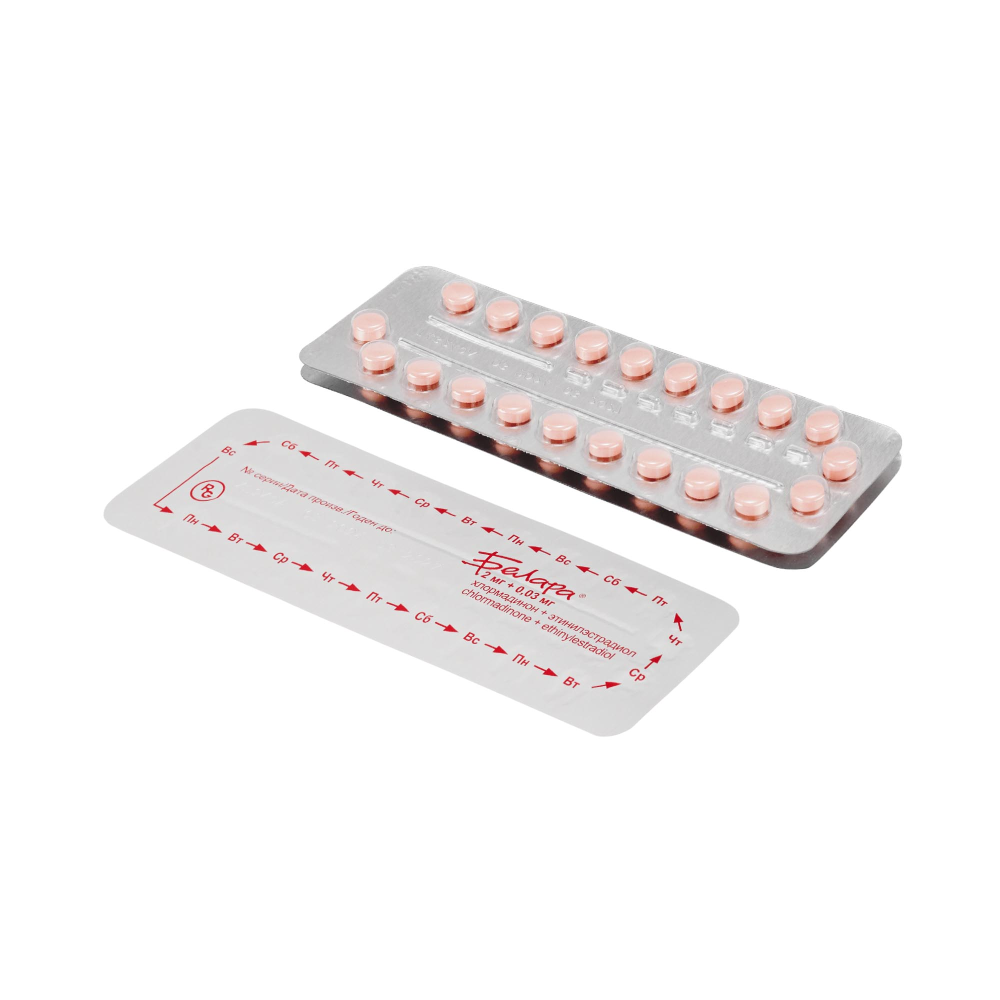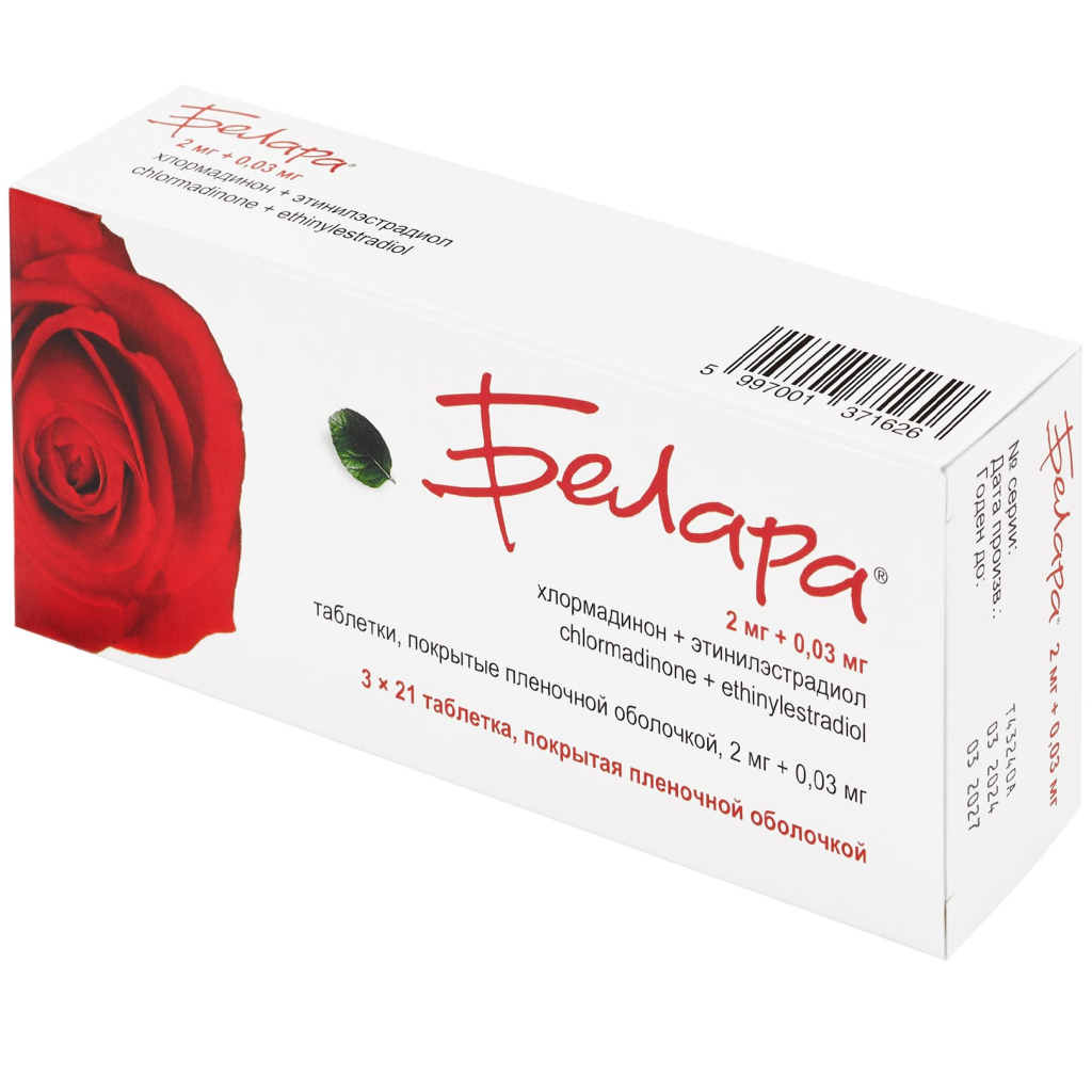 Действующие вещества: хлормадинона ацетат - 2 мг, этинилэстрадиол - 0.03 мг.