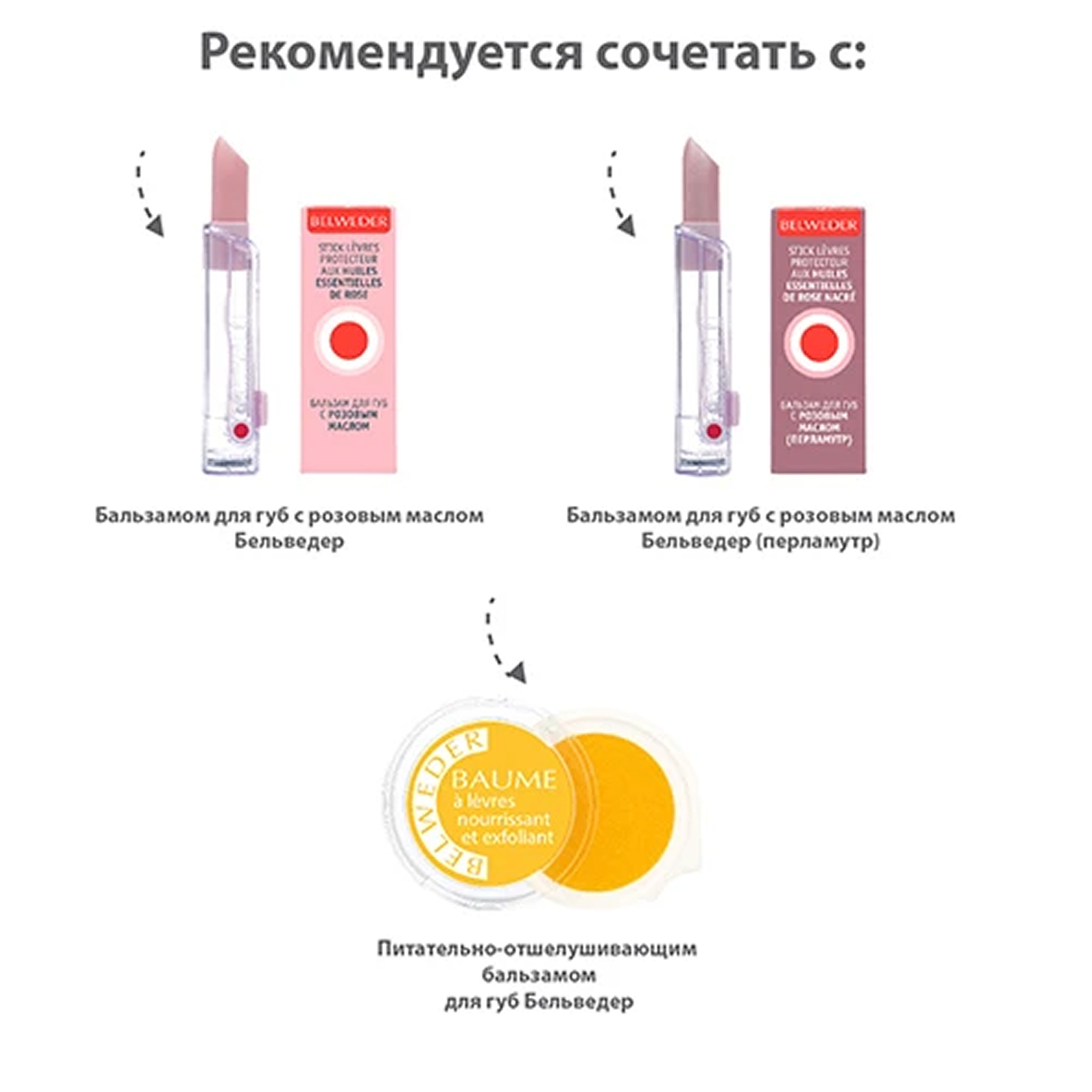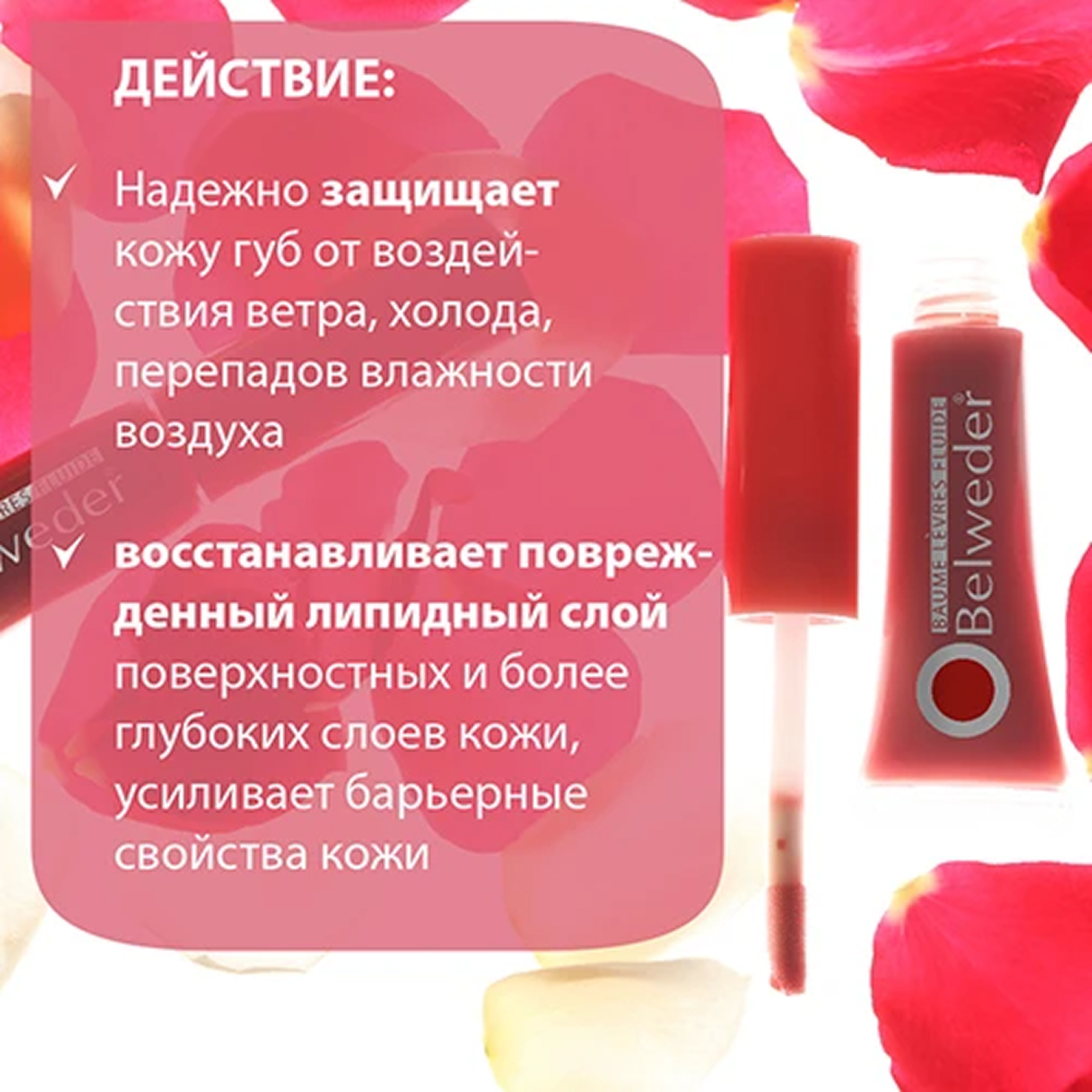 Натуральное розовое масло высшего сорта, входящее в рецептуру бальзама, дарит ощущение роскошного и изысканного ухода за требовательной и нежной кожей губ.