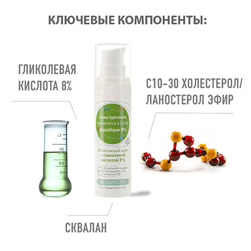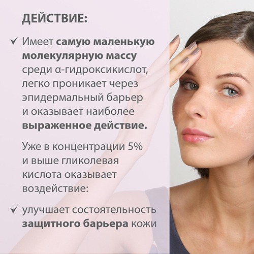 Гликолевая кислота оказывает отшелушивающее и реструктурирующее действие на кожу.