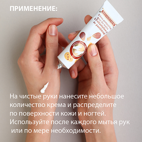 На чистые руки нанесите небольшое количество крема и распределите по поверхности кожи и ногтей. Используйте после каждого мытья рук или по мере необходимости.