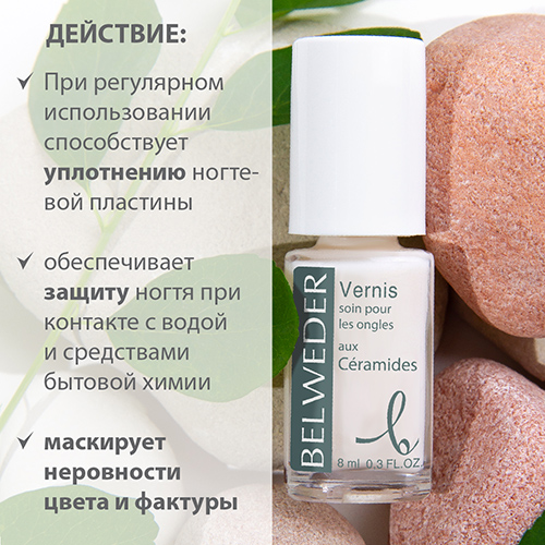 На чистые сухие ногти нанесите 1-2 слоя лака. Дайте полностью высохнуть. Можно использовать самостоятельно или как базу.