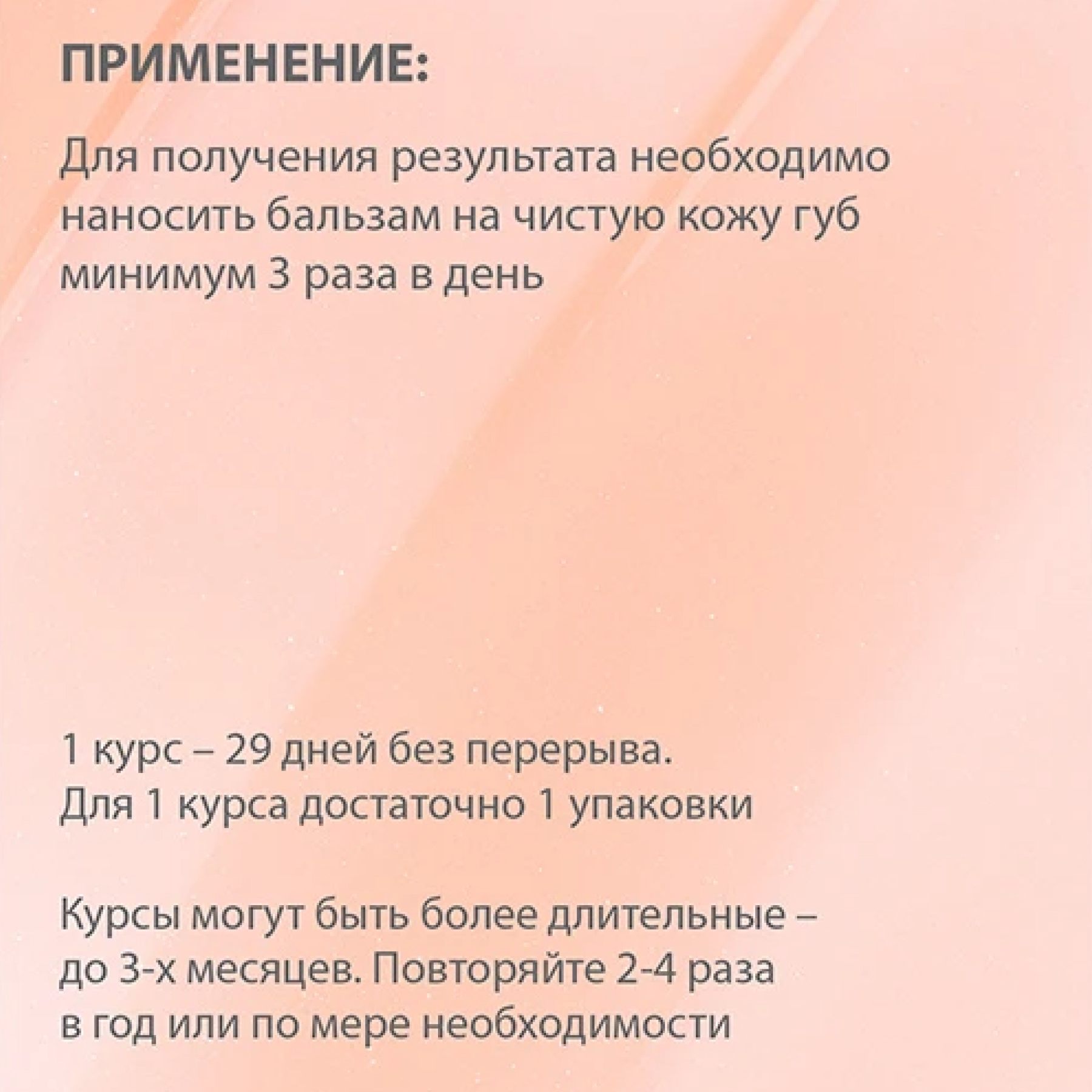 Для получения результата необходимо наносить бальзам на чистую кожу губ минимум 3 раза в день.