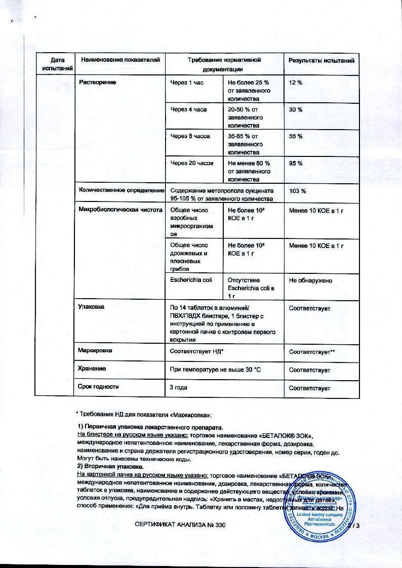При хорошей переносимости доза может удваиваться каждые 2 недели до достижения максимальной дозы 200 мг препарата Беталок® ЗОК один раз в сутки.