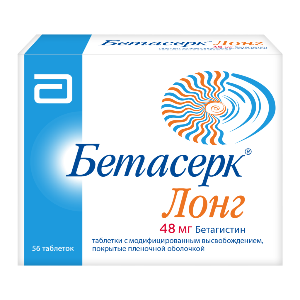 Общая экспозиция при приеме 1 таблетки Бетасерк® Лонг составляет в среднем 0,91 от АUС0-24, 0,83 от АUС0-t и 0,84 от АUС0-inf при приеме 2-х таблеток Бетасерк® 24 мг. При приеме однократной дозы препарата Бетасерк® Лонг достигается экспозиция 2-РАА в плазме крови, сравнимая с двукратным приемом препарата Бетасерк® 24 мг, но без значительного увеличения максимальной концентрации в плазме крови.
