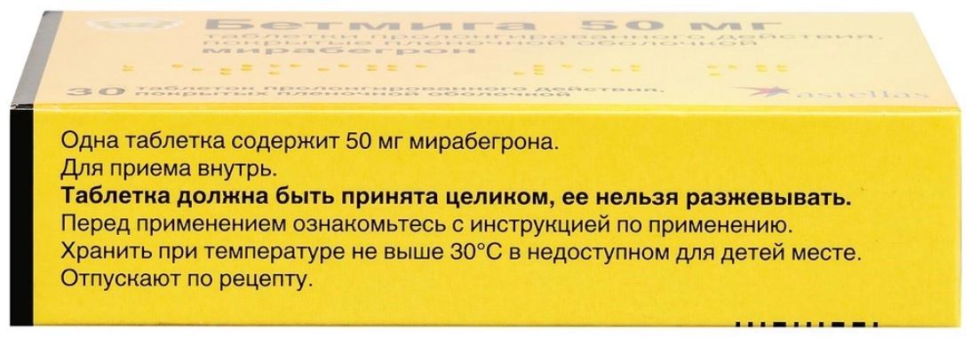 Мирабегрон также следует применять с осторожностью у пациентов, уже принимающих холиноблокаторы для лечения ГМП.