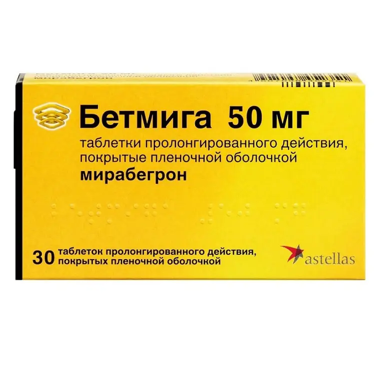 После перорального применения мирабегрон всасывается в кровоток и достигает Cmax в плазме крови в промежуток времени между тремя и четырьмя часами после приема. В исследованиях выявлено повышение абсолютной биодоступности с 29% до 35% после повышения дозы с 25 до 50 мг. При этом среднее значение Cmax и величина AUC возрастали более чем пропорционально дозе. Css достигается через 7 дней приема мирабегрона однократно в сутки. После многократного применения 1 раз/сут Css мирабегрона в плазме крови примерно в 2 раза превышают таковые после однократного приема препарата.