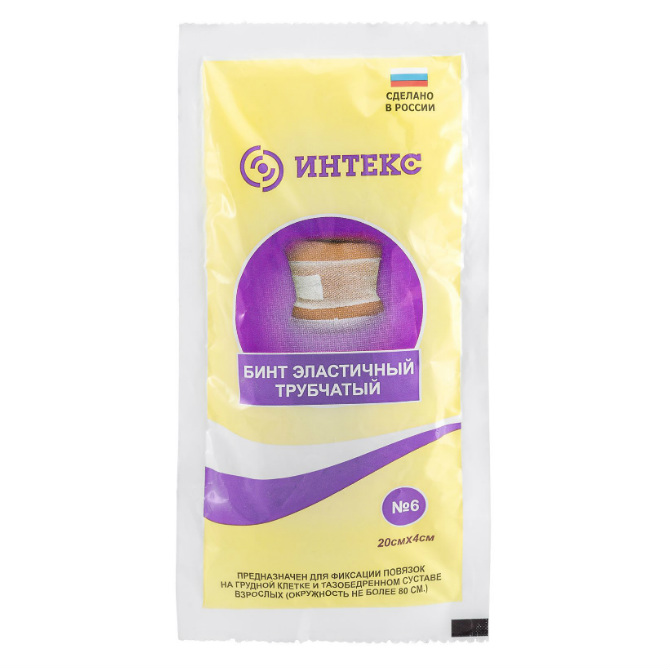 Бинт №6 трубчатый «ИНТЕКС» используют для фиксации повязок. Бинты обладают хорошей эластичностью, поэтому растягиваются до нужных размеров и надежно обхватывают место перевязки.