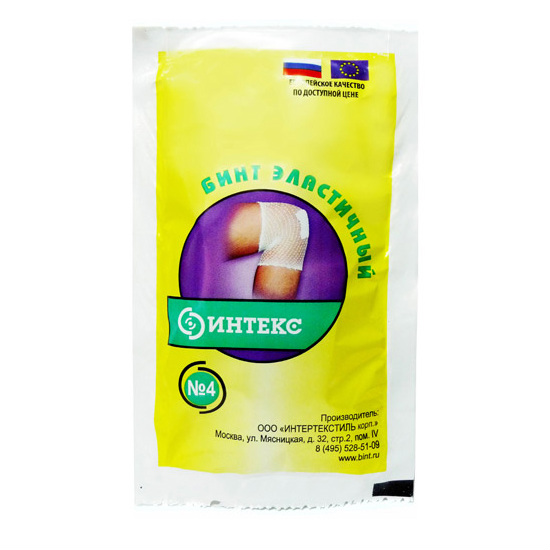 Бинт № 4 предназначен для фиксации повязок на коленном суставе взрослых, голове, грудной клетке, а также тазобедренном суставе детей.