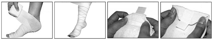 • При окончании закрепите конец бинта с помощью застежки-липучки. Аналогично бинт накладывается на другие суставы или мышцы.