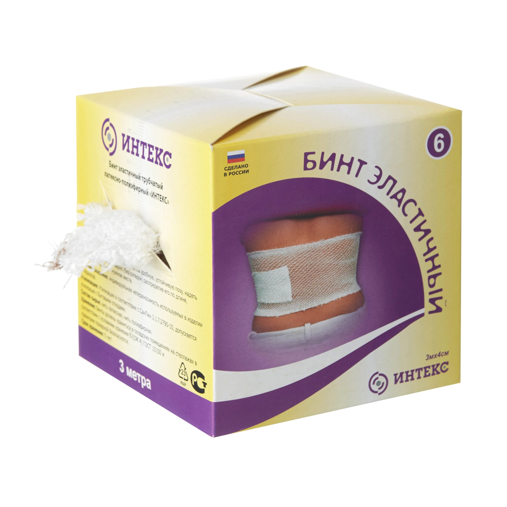 Бинт №6 применяется для фиксации повязок в области торса (на грудной клетке) и живота, в области тазобедренного сустава. Трубчатые бинты №6 ИНТЕКС длиной 3 метра обладают хорошей растяжимостью, они надежно облегают все части тела, не мешают кровообращению и не ограничивают движения в суставах. Бинты №6 обладают хорошим воздухообменом, прочные, сохраняют свои эластические свойства после стирки и не распускаются после надрезания. Применяя трубчатые бинты ИНТЕКС №6 по 3м можно сэкономить перевязочный материал и выиграть время на наложении повязок для фиксации, который заметно упрощается.