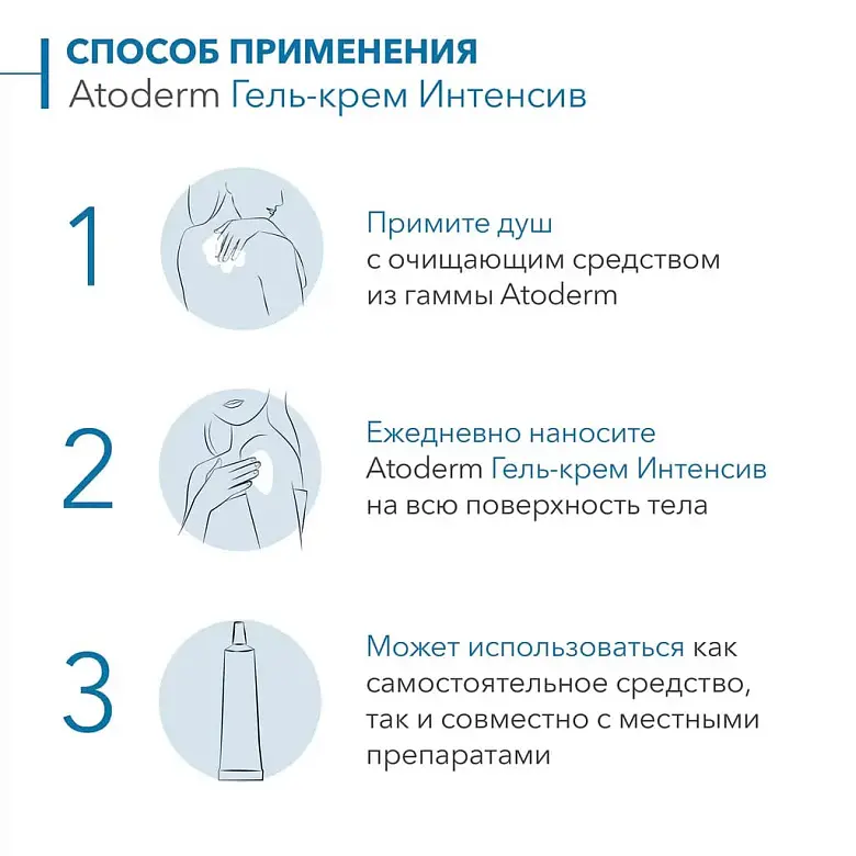 Atoderm Гель-крем Интенсив – это первое успокаивающее средство для ежедневного ухода за кожей, адаптированное к потребностям пациентов с атопичной кожей в теплое время года, а также в условиях влажного или тропического климата.