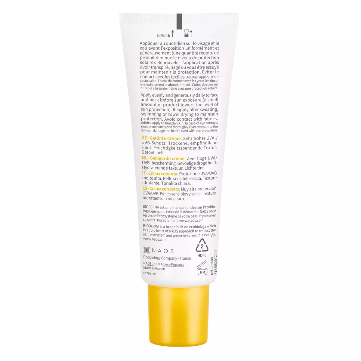 Water (Aqua), Dicaprylyl Carbonate, Octocrylene, Methylene Bis-Benzotriazolyl Tetramethylbutylphenol, Butyl Methoxydibenzoylmethane, Cyclome-Thicone, Alcohol Denat., C20-22 Alkyl Phosphate, Bis-Ethylhexyloxyphenol Methoxyphenyl Triazine, Ptfe, C20-22 Alcohols, Tocopheryl Acetate, Ectoin, Mannitol, Xylitol, Rhamnose, Fructooligosaccharides, Laminaria Ochroleuca Extract, Decyl Glucoside, Ammonium Acryloyldimethyltaurate/Vp Copolymer, Xanthan Gum, Disodium Edta, Sodium Hydroxide, Propylene Glycol, Citric Acid, Caprylic/Capric Triglyceride, Phenoxyethanol, Methylparaben, Propylparaben, Ethylparaben.