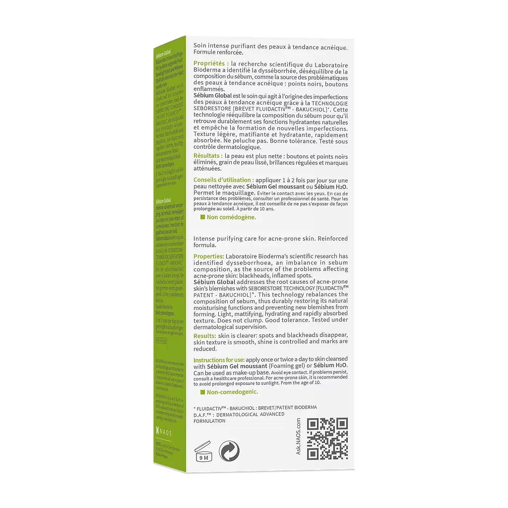 Крем Sebium Global относится к высокоэффективным уходовым средствам. В инструкции производителя акцентируется внимание на том, что оно способно нормализовать состав кожного жира и обеспечить глубокое увлажнение. На фоне такого воздействия гарантируется заметный омолаживающий эффект, а также устранение комедонов.