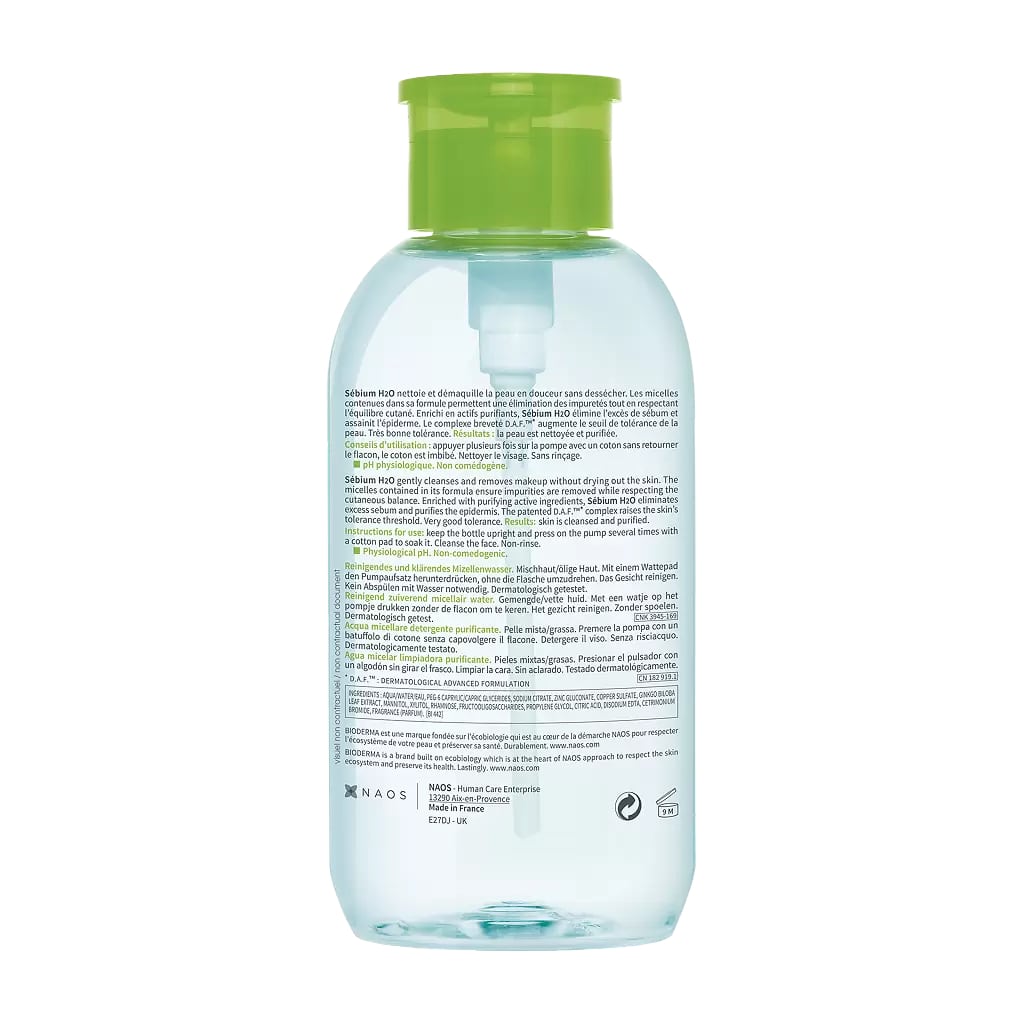 Мицеллярная вода Bioderma Sébium H2O содержит мицеллы, которые буквально захватывают макияж и загрязнения, при этом она не нарушает гидролипидный баланс кожи. В результате кожа защищена от свободных радикалов, загрязнения, аллергенов и агрессивных факторов окружающей среды. Без спирта, парабенов и красителей. Подходит комбинированной, жирной и проблемной коже.