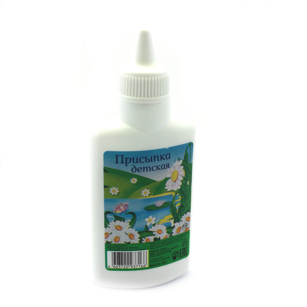 Присыпка детская — оказывает адсорбирующее, подсушивающее и вяжущее действие (профилактика опрелостей).