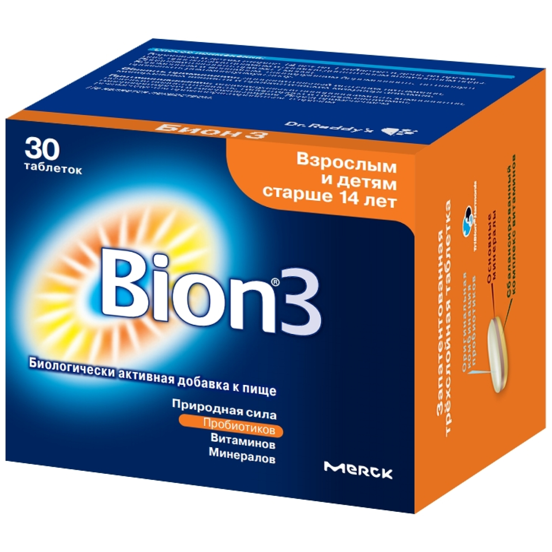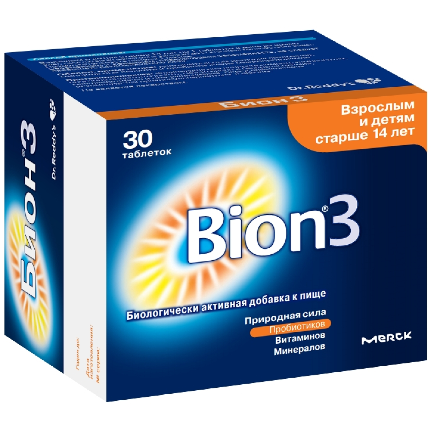 Взрослым и детям старше 14-ти лет по 1 таблетке в день во время еды, проглатывая целиком и запивая достаточным количеством воды. Продолжительность приема 1 месяц. При необходимости (особенно в зимний и весенний периоды) курс можно повторить. При приеме антибиотиков рекомендуется принимать ежедневно по 1 таблетке БИОН® 3 через 2 часа после приема антибиотиков, не раскусывая и запивая достаточным количеством воды (1 стакан). Не превышать рекомендованную дозу. Начинать прием БИОН® 3 необходимо одновременно с началом приема антибиотиков.