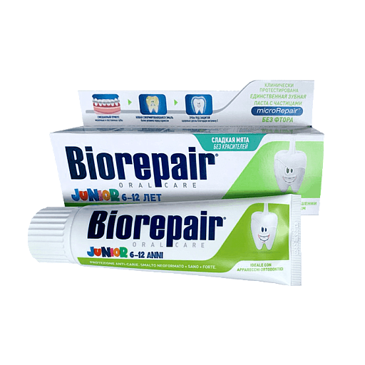 - укрепляет детскую эмаль благодаря частицам microRepair. Их состав идентичен природному гидроксиапатиту, из которого состоят эмаль и дентин. Благодаря своей игольчатой структуре microRepair встраиваются в зубную эмаль, заполняя микротрещины, восстанавливают ее и делают гладкой;