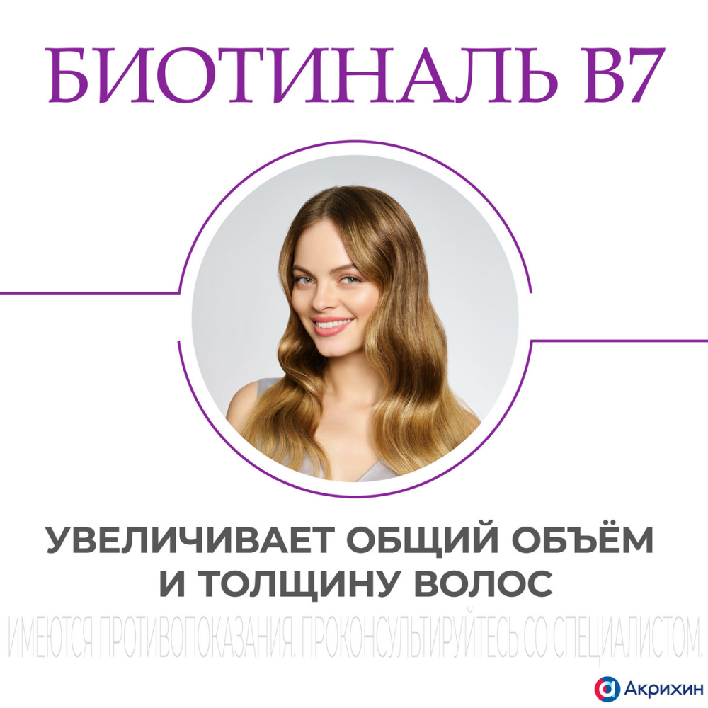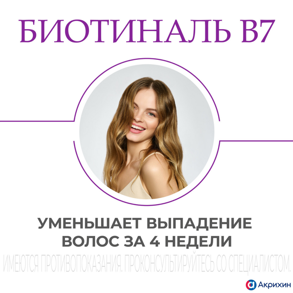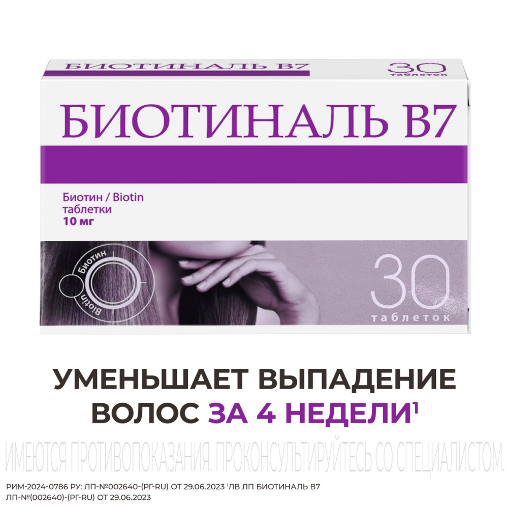 Препарат Биотиналь В7 применяется для лечения диффузной алопеции (патологическое полное или частичное выпадение, или поредение волос) не гормональной этиологии, снижения густоты и интенсивности выпадения волос у взрослых в возрасте старше 18 лет.