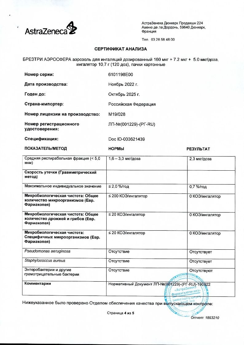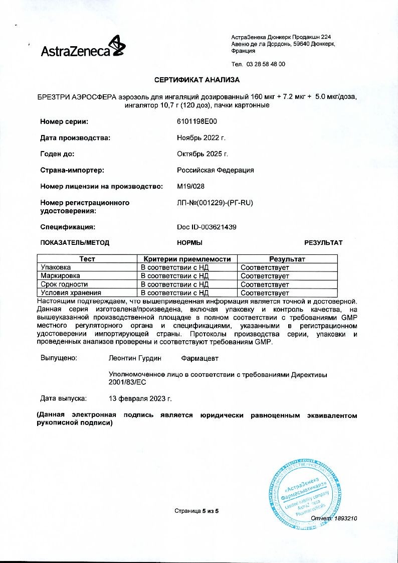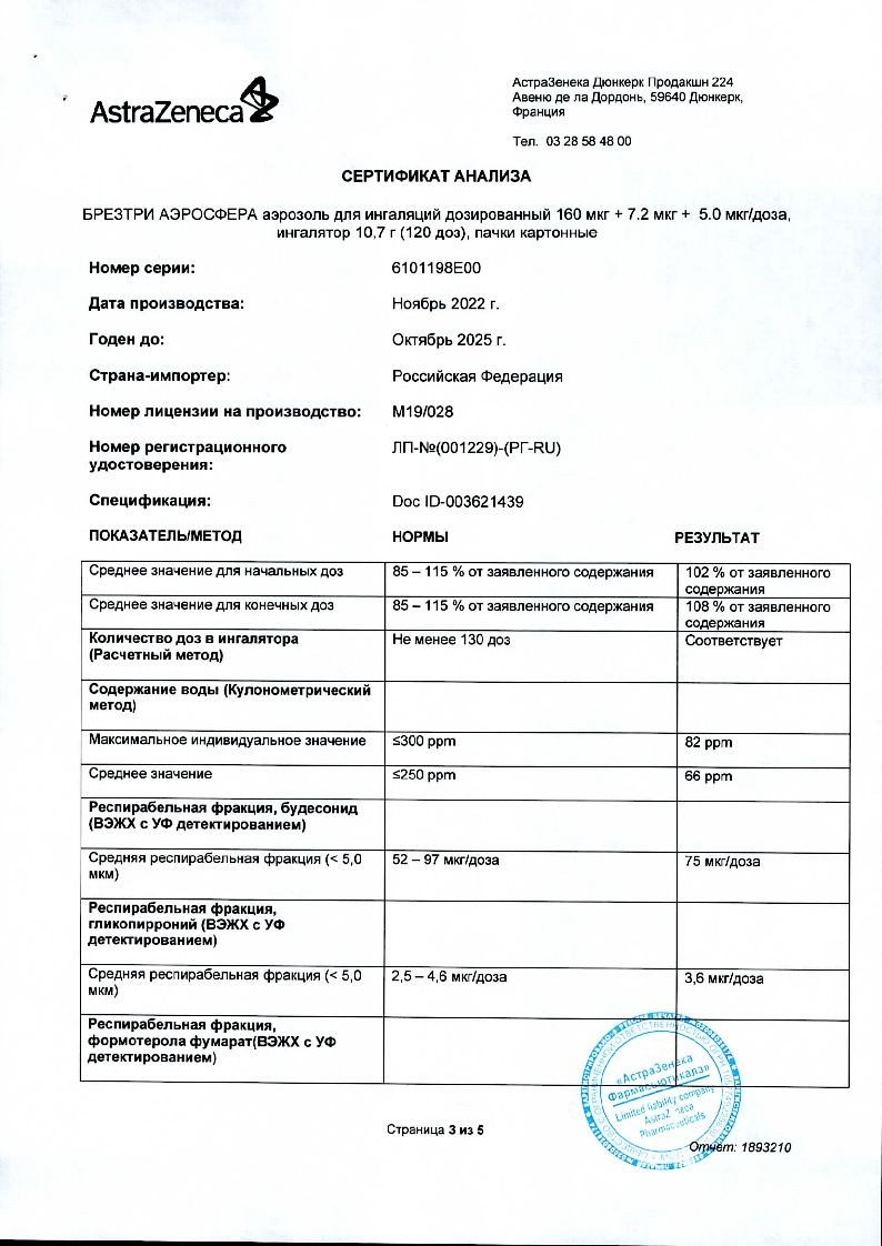 Внимательно прочитайте данную инструкцию по применению и листок-вкладыш перед началом применения препарата БРЕЗТРИ АЭРОСФЕРА и каждый раз при вскрытии новой упаковки. В них может содержаться новая информация. Данная информация не заменяет консультации с лечащим врачом о Вашем заболевании или лечении.
