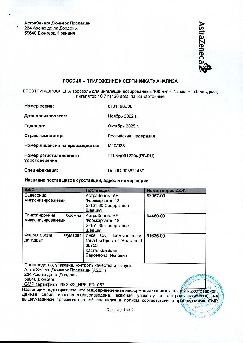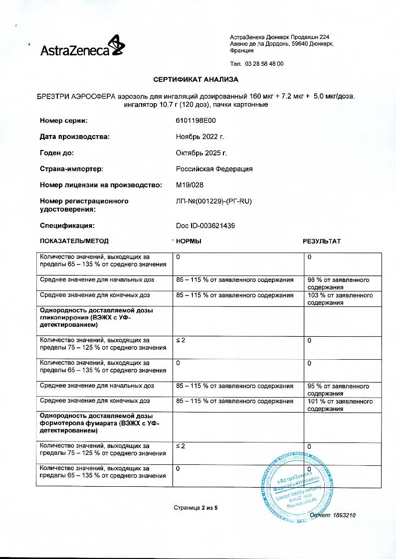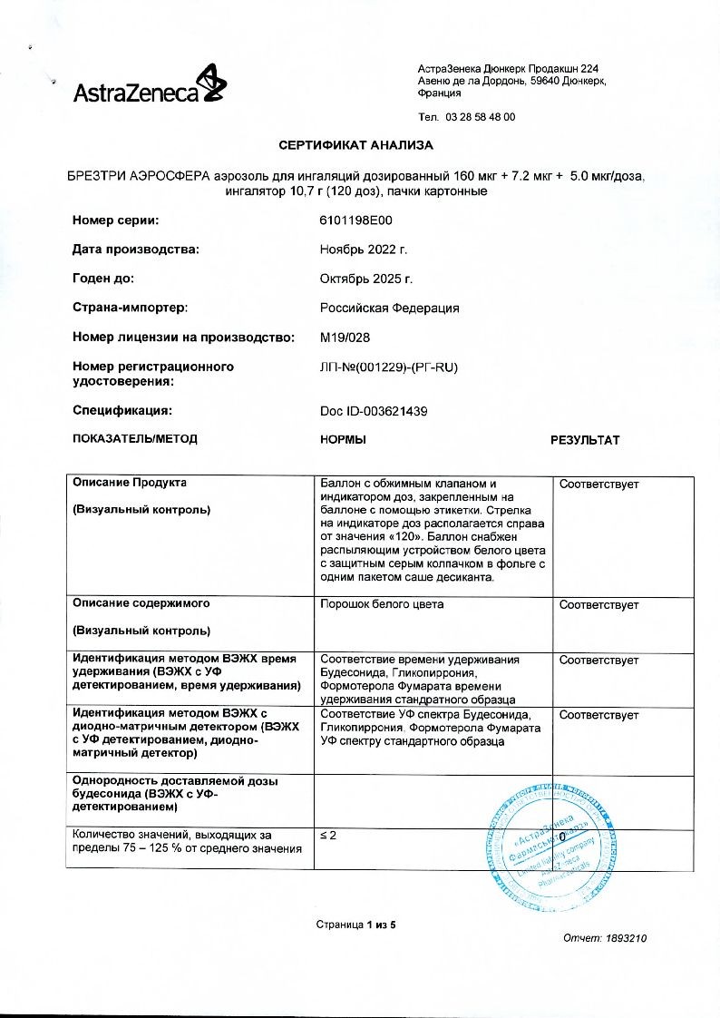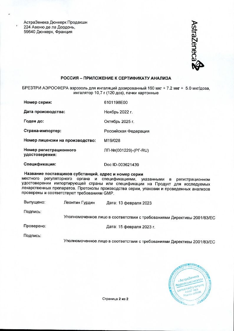 Внимательно прочитайте данную инструкцию по применению и листок-вкладыш перед началом применения препарата БРЕЗТРИ АЭРОСФЕРА и каждый раз при вскрытии новой упаковки. В них может содержаться новая информация. Данная информация не заменяет консультации с лечащим врачом о Вашем заболевании или лечении.