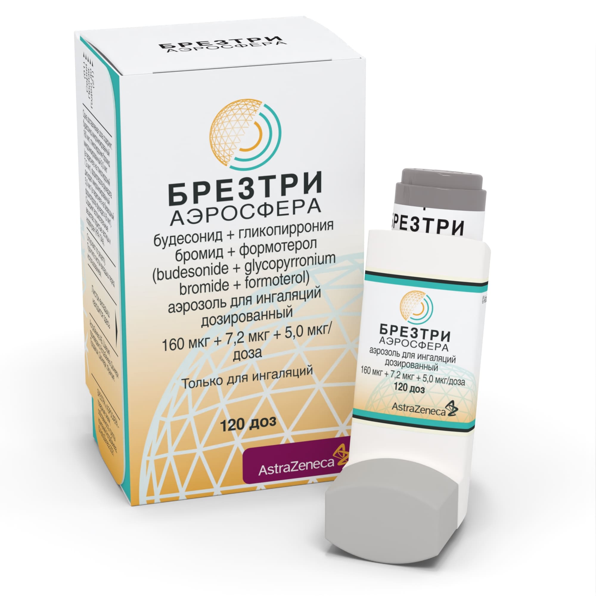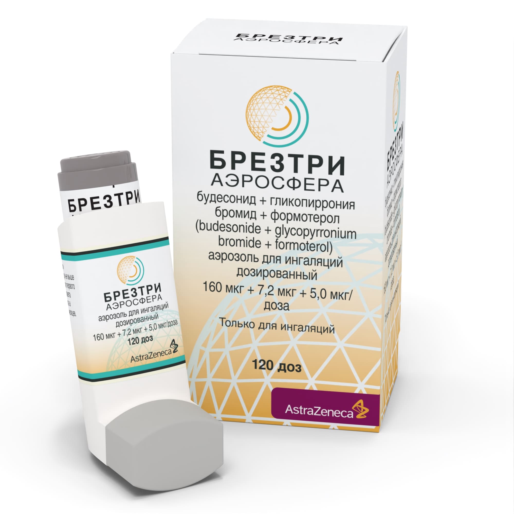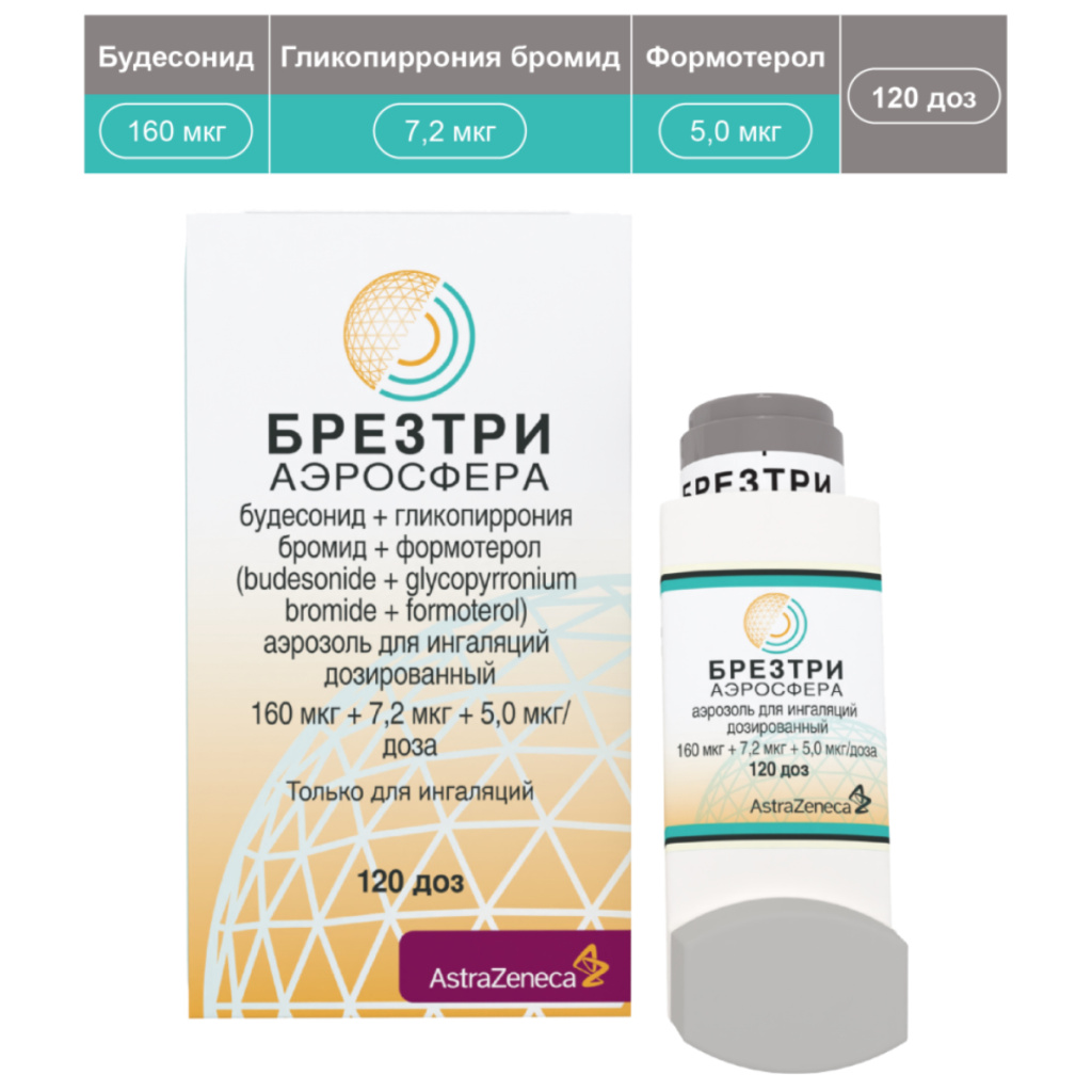 БРЕЗТРИ АЭРОСФЕРА, 160 мкг + 7,2 мкг + 5,0 мкг/доза, аэрозоль для ингаляций