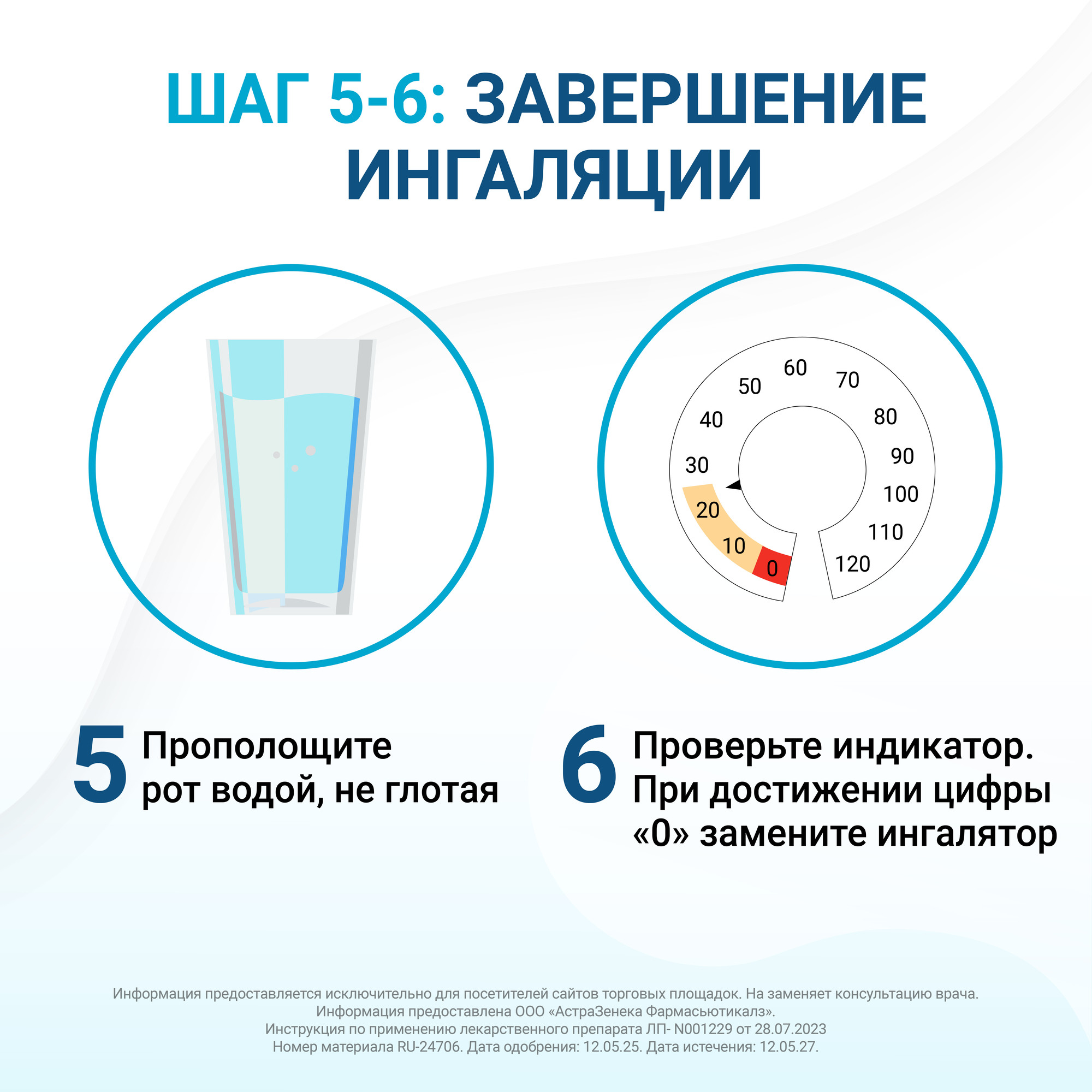 Шаг 7. Спокойно выдохните. Повторите шаги со 2 по 7, чтобы провести вторую ингаляцию препарата БРЕЗТРИ АЭРОСФЕРА.