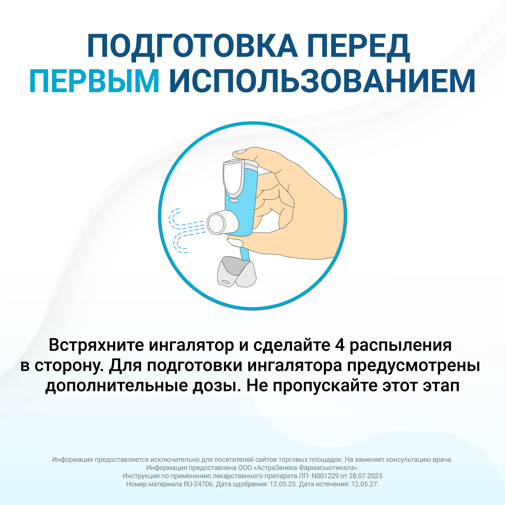 Перед первым использованием ингалятора БРЕЗТРИ АЭРОСФЕРА Вы должны подготовить его к использованию.