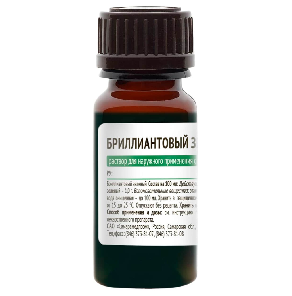 Раствор бриллиантового зеленого несовместим с дезинфицирующими средствами, содержащими активный йод, хлор, щелочи, включая раствор аммиака.