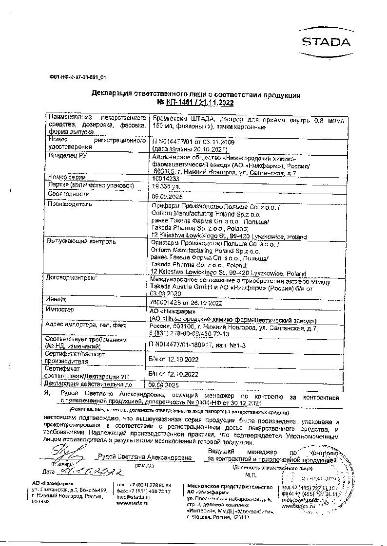 Опасные для жизни передозировки при применении Бромгексина Никомед у человека не известны.