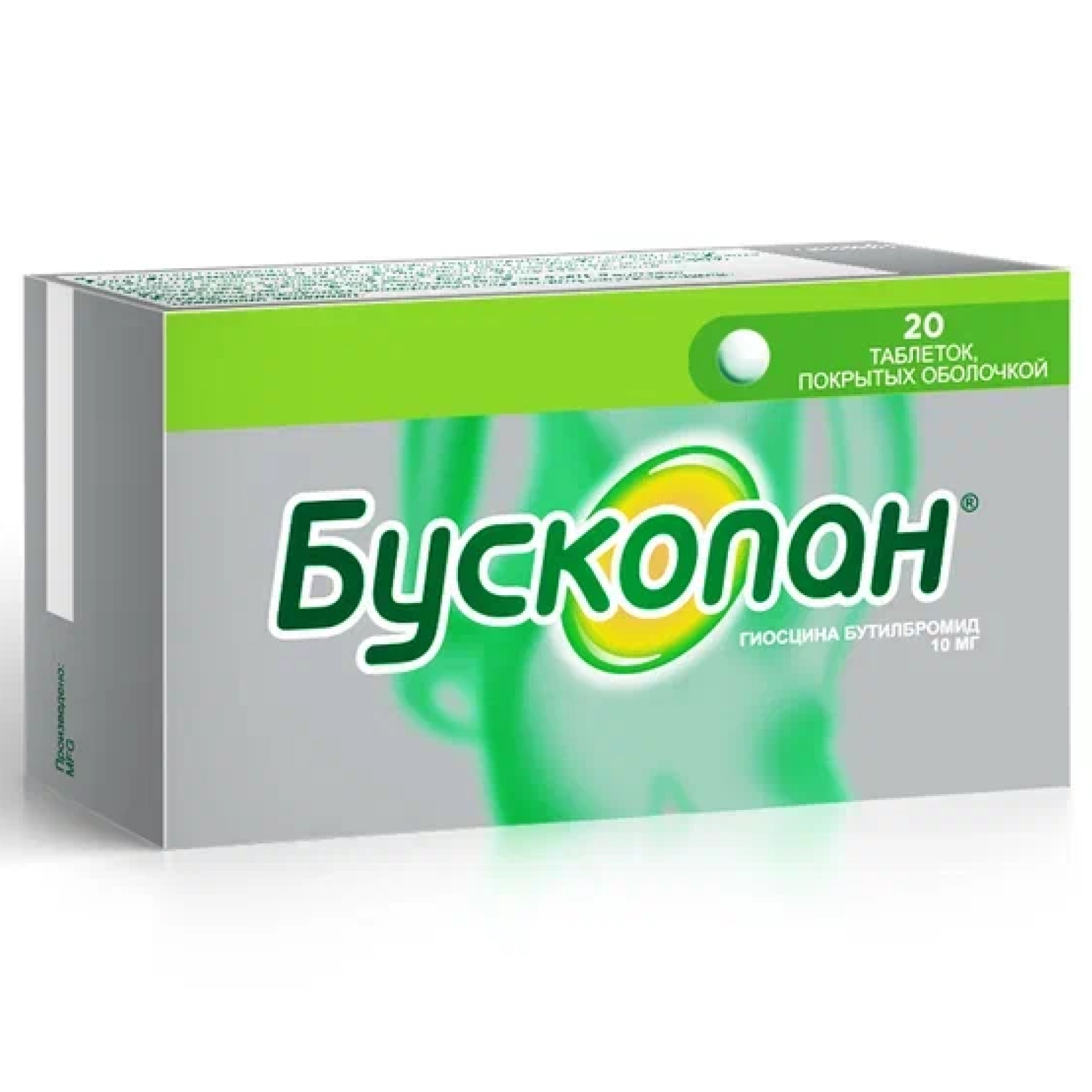 Действующее вещество: гиосцина бутилбромид - 10 мг;
