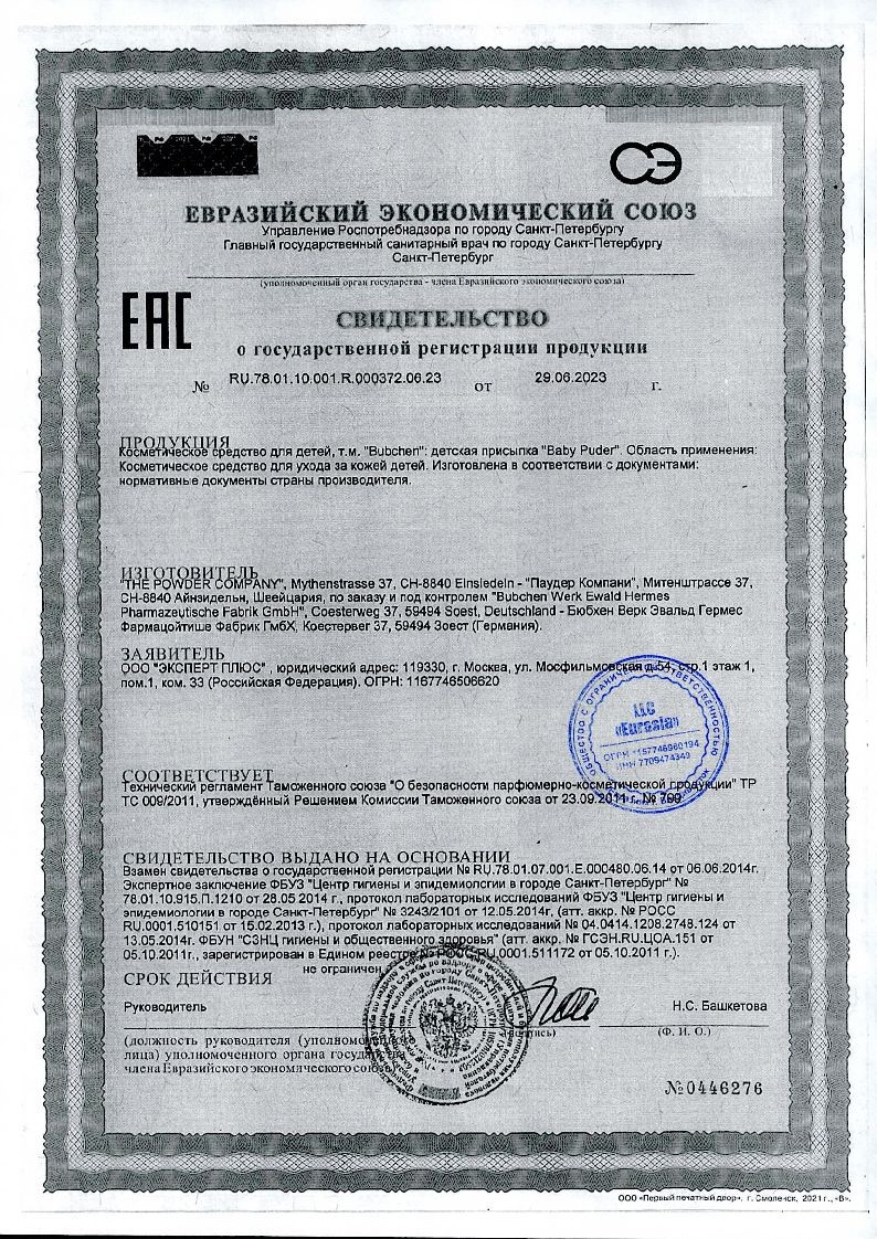 Присыпка Bubchen обладает высокой степенью абсорбции и отлично впитывает влагу. Основа – чистый тальк мелкого помола. При намокании тальк не слипается и не образует комочков, которые могут повредит нежную детскую кожу.