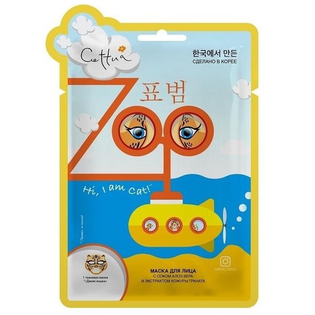 Маска для лица с изображением мордочки рыси. Глубоко увлажняет, успокаивает чувствительную кожу. Экстракт кожуры граната действует как успокаивающее средство. Позволяет удалить избыток кожного жира и устраняет загрязнение пор. Сок алоэ вера обеспечивает интенсивное увлажнение. Кожа обретает новую жизнь, становится гладкой и сияющей. Тканевая основа из целлюлозы представляет собой тонкое и мягкое полотно, которое идеально прилегает к коже.
