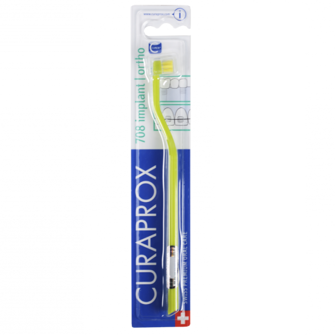 CURAPROX 708 - гибкая щетка с 7 тонкими мягкими пучками щетины CUREN®, предназначенная для чистки труднодоступных поверхностей зубов, брекетов, имплантатов и зубодесневой бороздки.