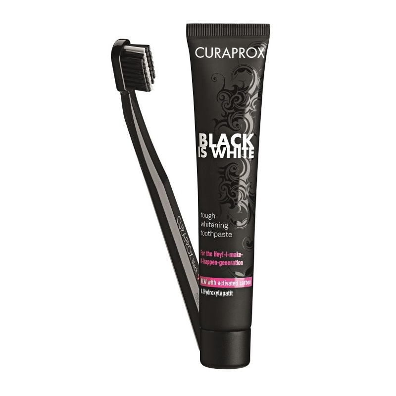 Набор Curaprox для отбеливания Black is White Set состоит из мануальной зубной щетки CS5460 с ультрамягкой щетиной и отбеливающей зубной пасты и направлен на бережное отбеливание, реминерализацию эмали и улучшение общего состояния полости рта.