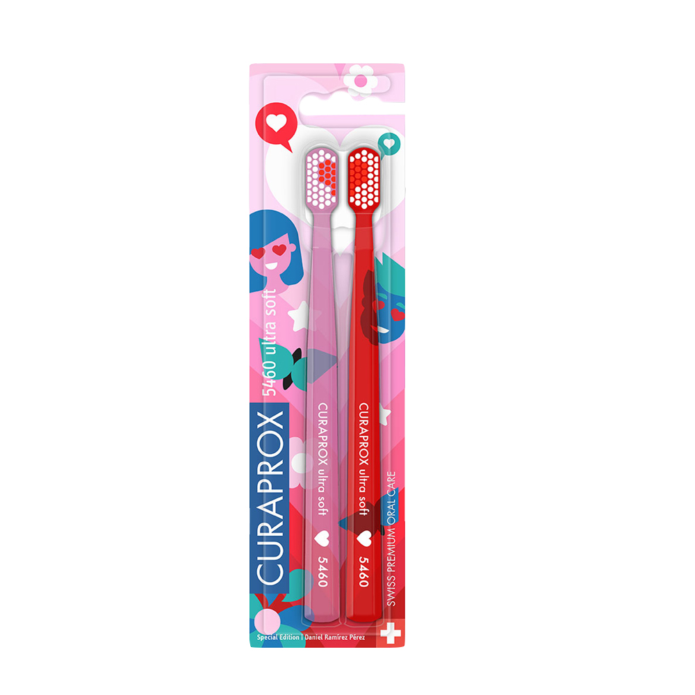Лимитированный набор Duo Love 2021 из двух ультра мягких зубных щеток. Запатентованное полиэстровое волокно Curen создает необыкновенно густую и эффективную чистящую поверхность. Щетинки Curen плотнее, чем нейлон, меньше впитывают влагу и сохраняют свои очищающие свойства на 60% дольше. Бережно очищают поверхность эмали, более тщательно разрушают и удаляют зубной налет, особенно в зоне десневой борозды. Маленькая и компактная головка, имеющая легкий наклон, обеспечивает правильное положение щетки в пришеечной зоне. Восьмигранная ручка из легкого полипропилена помогает чистить зубы под правильным углом. Щетка содержит 5460 щетинок, d 0,10 мм. Произведена в Швейцарии.