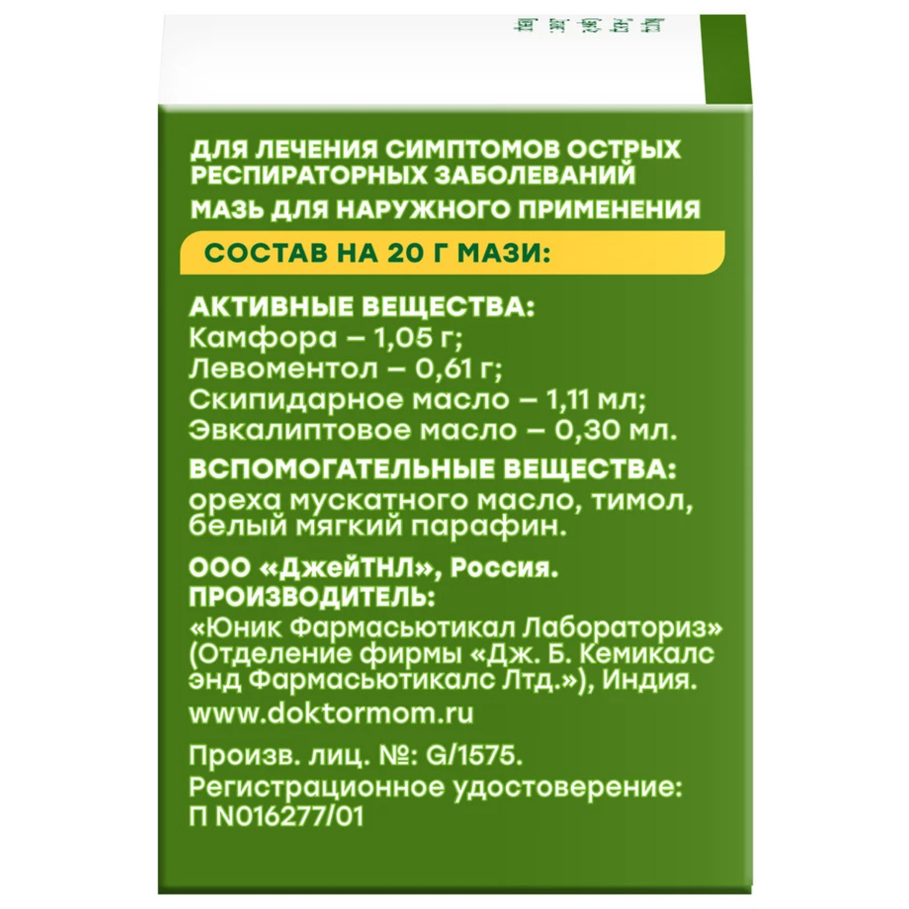 Доктор Мом® ФИТО мазь, 20 г - препарат для всей семьи, созданный для терапии симптомов вирусных инфекций верхних дыхательных путей.